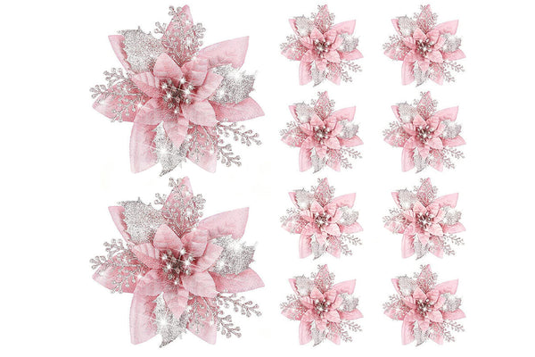 Designed to resemble real blooms with vibrant colors and delicate detailing, these shimmering decorations are perfect for Christmas trees, wreaths, centerpieces, or tabletop displays.
