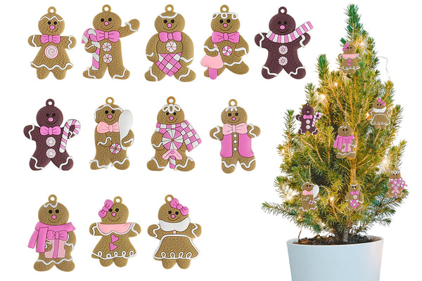 Description: The 12 pack gingerbread man decorations were brightly colored and varied, fun and cute gingerbread man decorations fit the Christmas theme, and add the festive atmosphere.