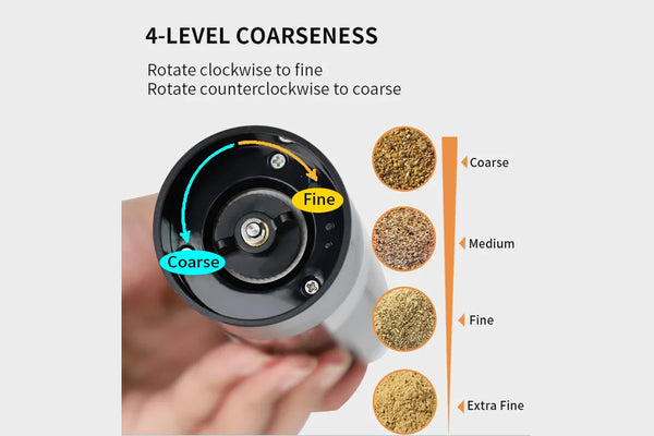 Adjustable Coarseness Setting: Easily adjust the grinding level to achieve fine or coarse seasoning for different cooking needs.