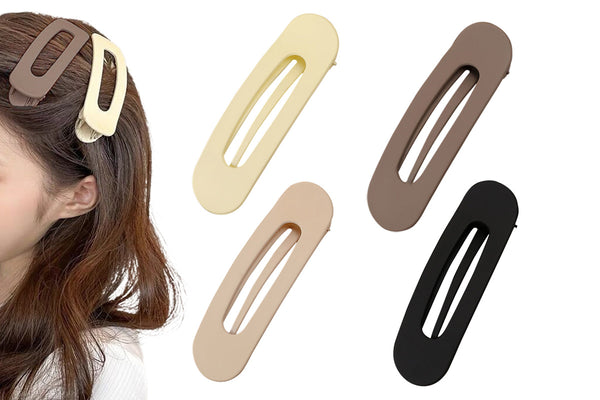 Description: Set of 4 durable flat claw clips designed for strong, non-slip hold all day. The lay flat design provides comfort when leaning back, making them perfect for daily wear on thick, thin, straight, or curly hair.