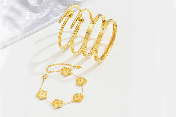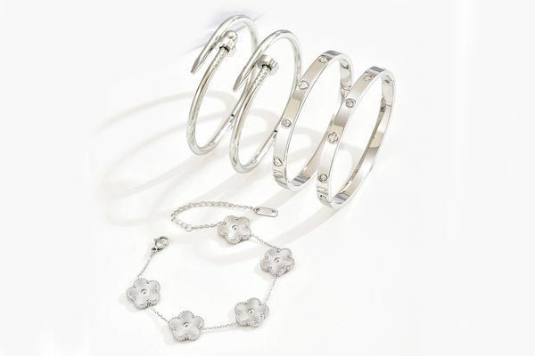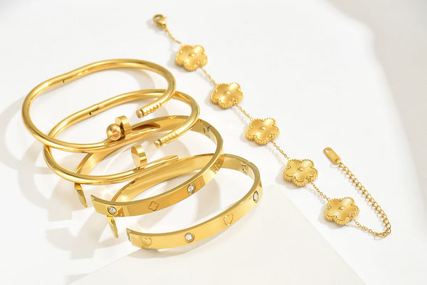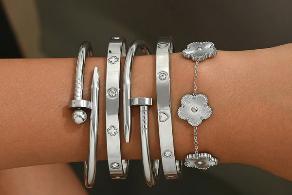 Complete 5-Piece Set: Includes four sleek open cuff bracelets and one elegant chain bracelet for versatile styling.