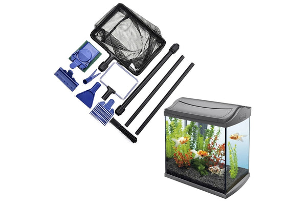 Efficient and Versatile: Tank brush support rotates 360 degree to clean glass surfaces and remove mild algae or stains. Fish net is fit for gently collects debris or leftover food. Fine mesh protects fish. Gravel rake helps level substrate and maintain aquarium landscaping. Algae Scraper can removes stubborn algae without scratching the glass. Plant Clipis perfect for trimming or positioning aquatic plants.
