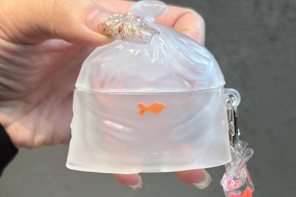 This adorable goldfish bag AirPods case is the perfect blend of fun and function for your wireless earbuds. Designed to look like a translucent water bag with a playful orange goldfish inside, it adds a whimsical touch to your everyday carry.
