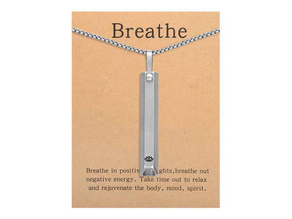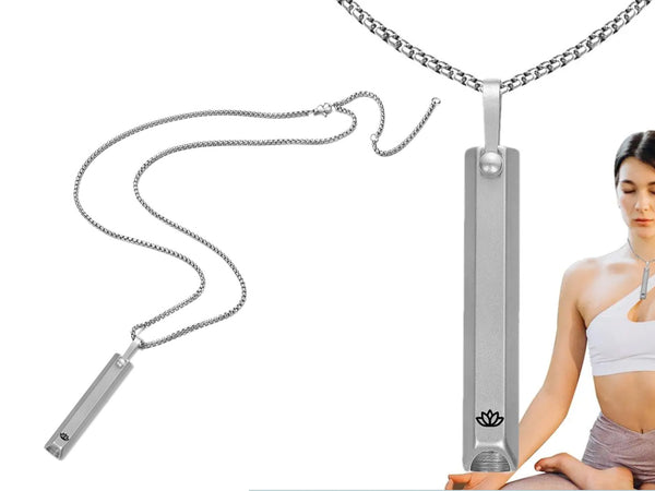 The necklace is designed to be portable and can be used anywhere to help regulate breathing and restore calmness quickly.