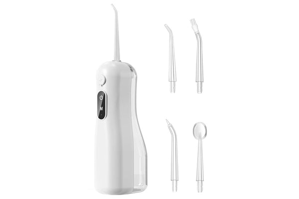 The water dental flosser is equipped with ergonomic handle and 4 interchangeable nozzles ensure a comfortable and versatile experience.
