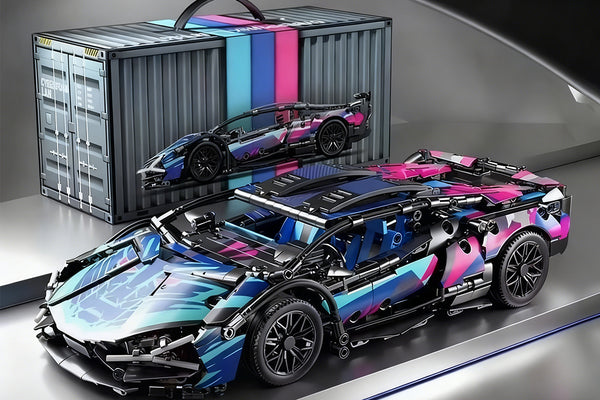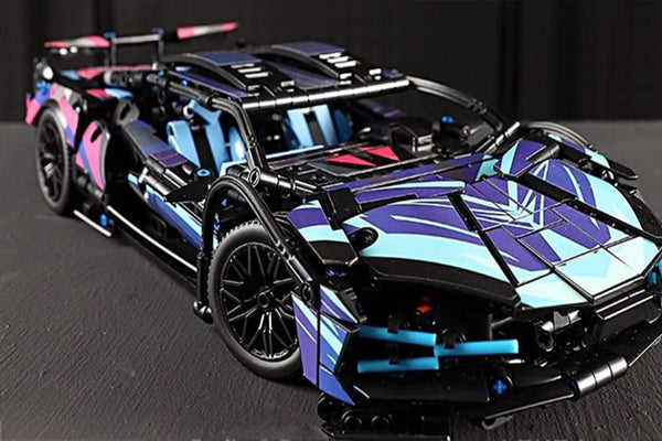 Description: A futuristic cyberpunk building block sports car that supports both handle and APP control, offering an exciting and immersive racing experience for car lovers and DIY enthusiasts.