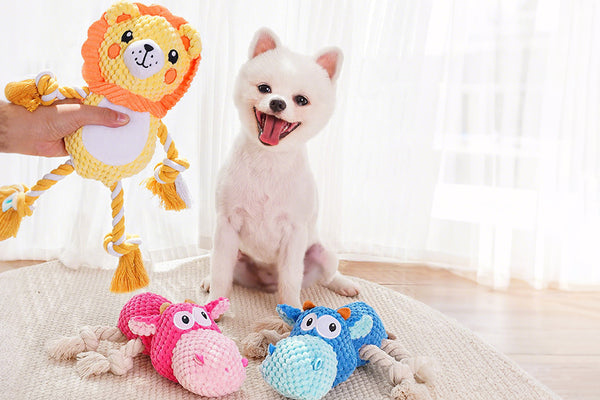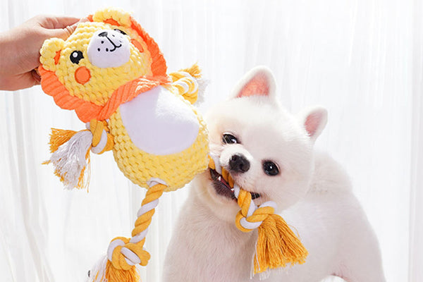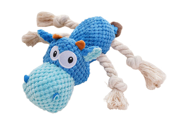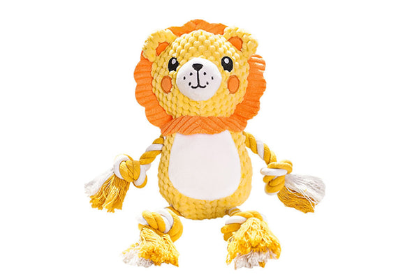 Made from polyester fabric and filled with 3D bean cotton, this plush toy is soft enough for chewing but tough enough to withstand rough play. Gentle on teeth and gums, it helps clean teeth and massage gums during chewing.