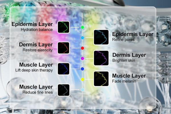 It provides precise light therapy through green light (540nm) for oily and sagging skin, red light (630nm) for dry and dull skin, and blue light (450nm) for skin with fine lines and acne.