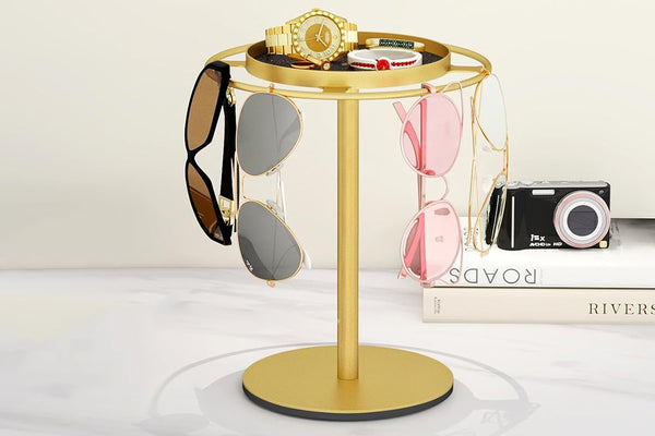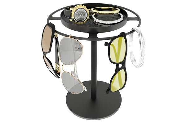 Description: This iron Sunglasses organizer holds up to 10 pairs of Sunglasses and features a frosted tray, keeping your space tidy and stylish.