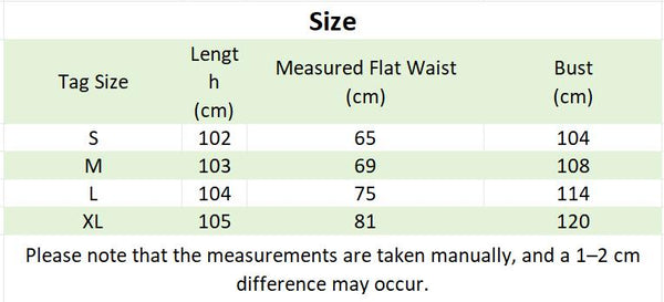 S Size (Length x Waist x Hip): 102cm x 65cm x 104cm