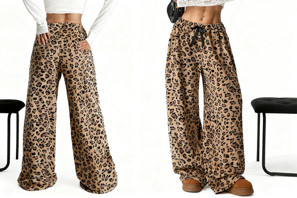 Description: Stylish leopard print sweatpants featuring a relaxed fit and soft fabric, bringing effortless vintage vibes to your casual wardrobe.