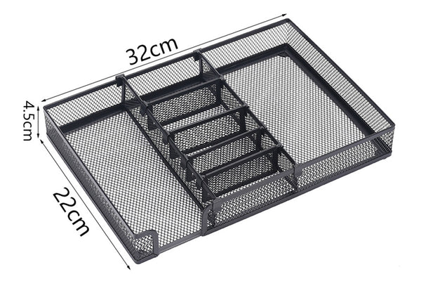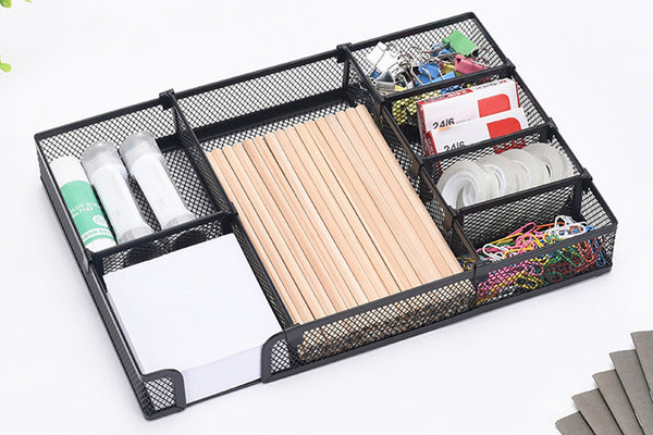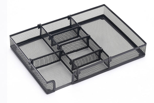 Keep your workspace neat and tidy with this mesh drawer organizer featuring 6 adjustable compartments for customized storage.