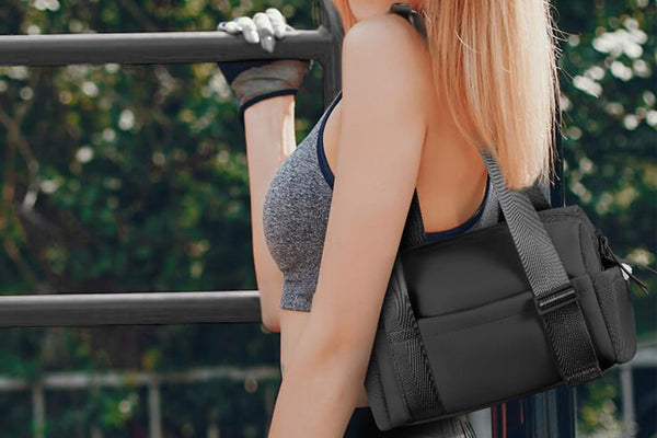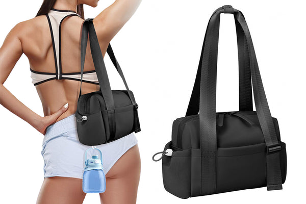 It can provide enough capacity for fitness essentials such as cell phone, wallet, cosmetics, watch, headphones, towel, water bottle and umbrella.