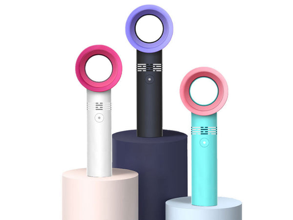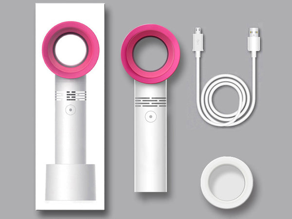 Description: Stay cool on the go with this mini leafless fan featuring three wind speed settings and USB charging compatibility.