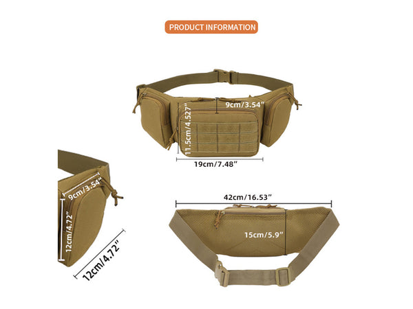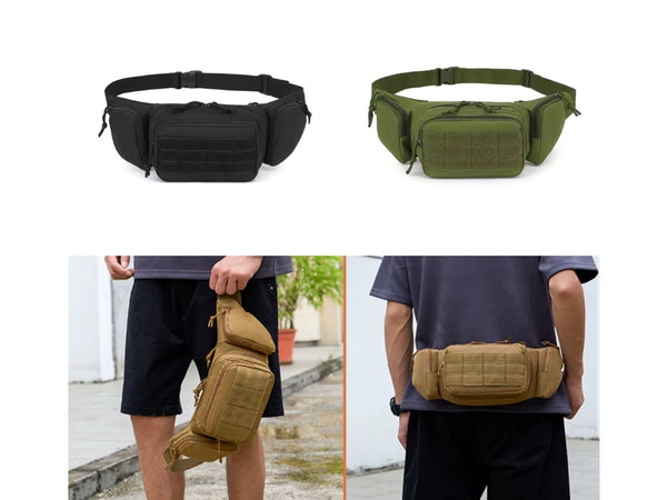 Description: Lightweight and spacious tactical waist bag with water-resistant fabric, ideal for outdoor sports, travel, or daily carry.