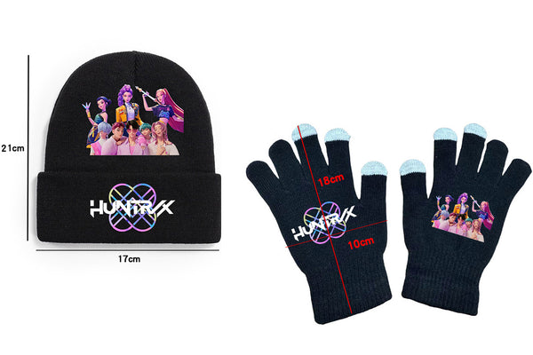 Description: Stay cozy and stylish with this K-pop Demons Hunters Group printed knit set, featuring a soft hat and matching gloves for ultimate warmth in cold weather.
