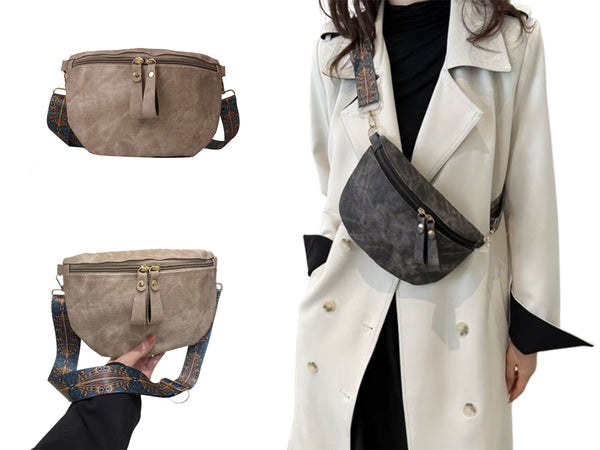 Description: A chic and functional PU leather chest bag featuring a wide retro-style adjustable strap, perfect for daily use or casual outings.