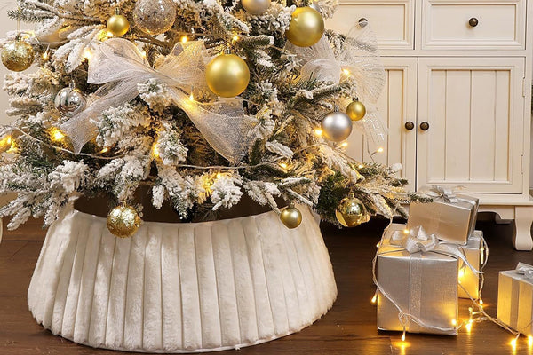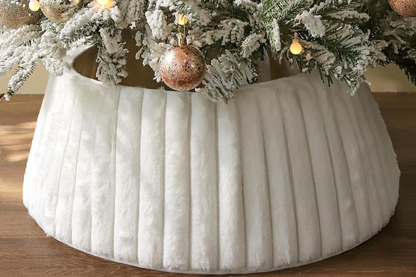 The Christmas tree collar offering a creamy base tone that complements rustic home decor while enhancing festive elegance and visual appeal.