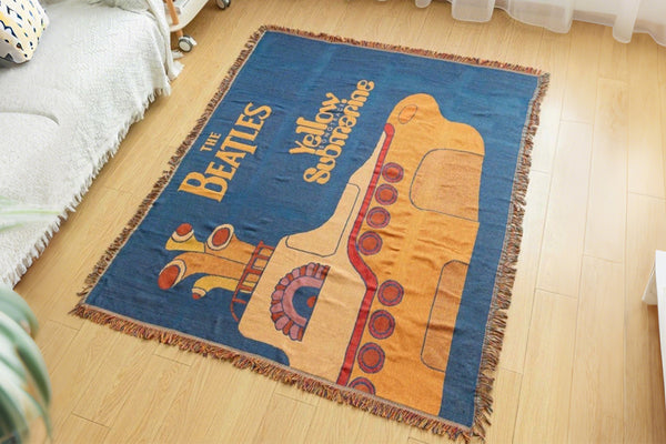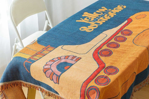 Description: Cartoon yellow submarine pattern blanket designed for camping travel or sofa decoration. Lightweight polyester fabric provides comfortable coverage for indoor and outdoor use.